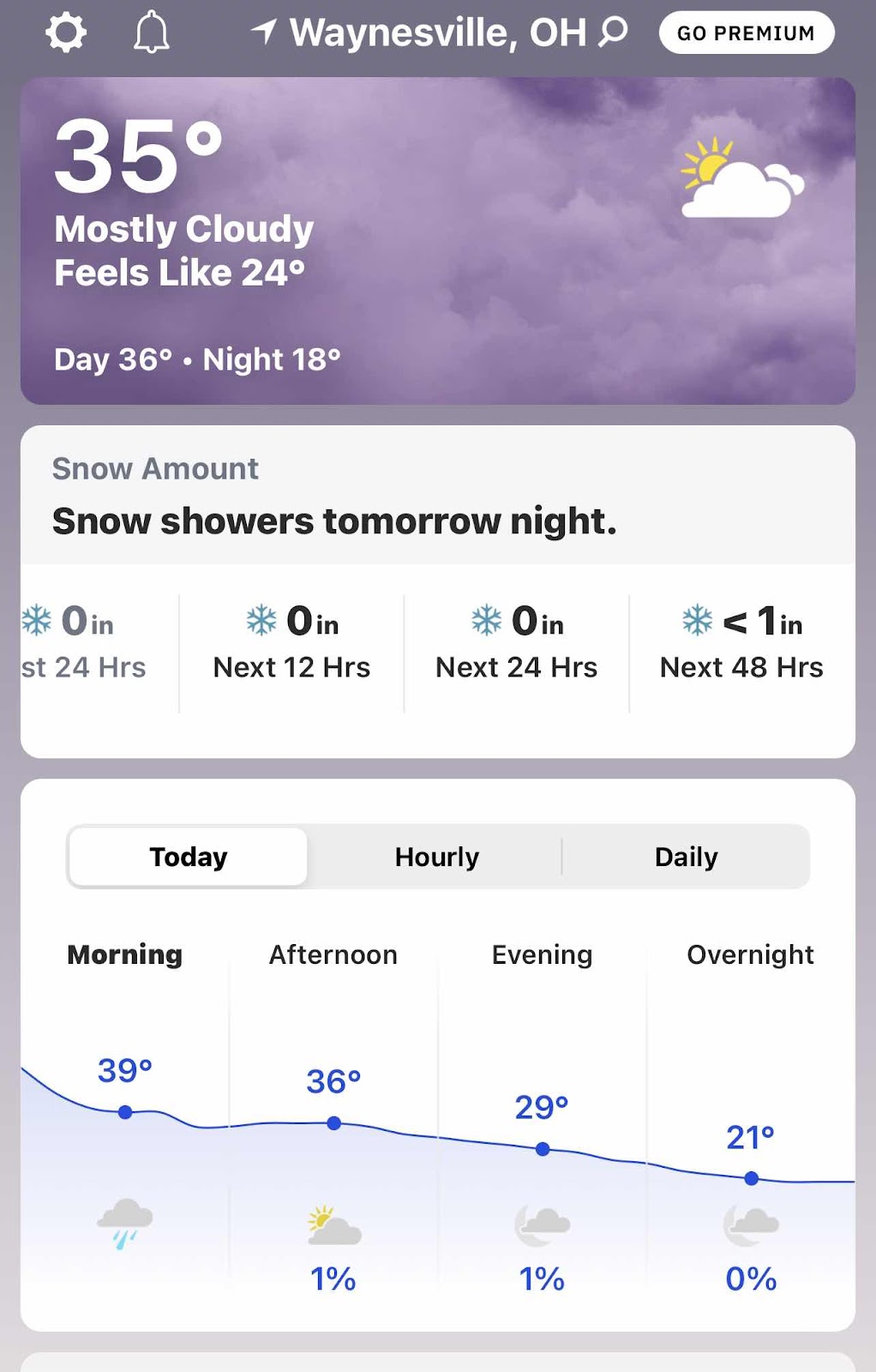 Yesterday was frigid. Below is a screenshot of our weather in Waynesville. My Mamaw would describe this forecast as "bone hurting cold"!